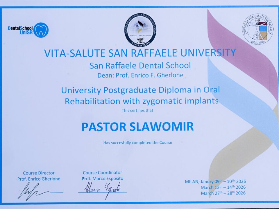 Lek. dent. specjalista chirurgii szczękowo-twarzowej Sławomir Pastor oraz lek. dent. Nastazja Kachniarz ukończyli we Włoszech międzynarodowe studia podyplomowe z zakresu rehabilitacji implantoprotetycznej z użyciem implantów jarzmowych. […]