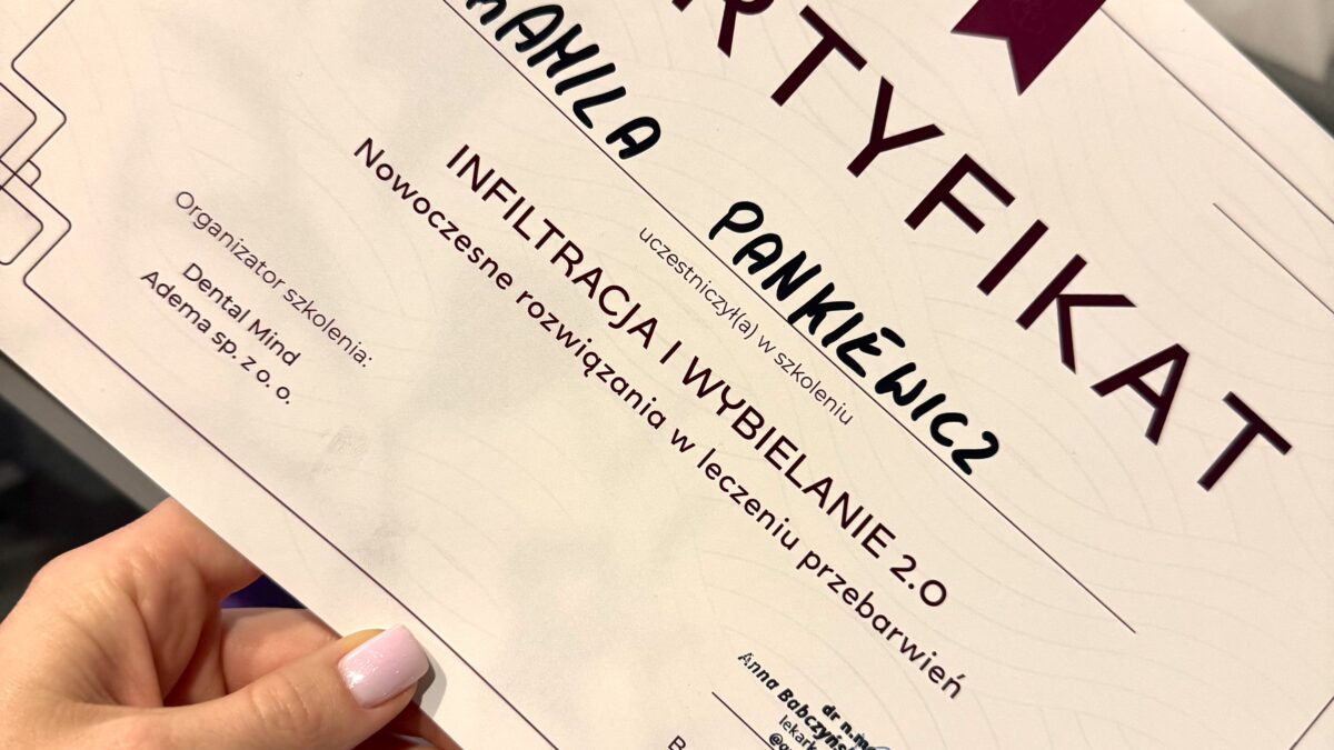 W przededniu wiosny, w stolicy, na szkoleniu zorganizowanym przez dr n.med. Annę Babczyńską-Staszewską Kamila poszerzała swoją wiedzę, aby nasi Pacjenci mogli uśmiechać się w pełnej krasie.