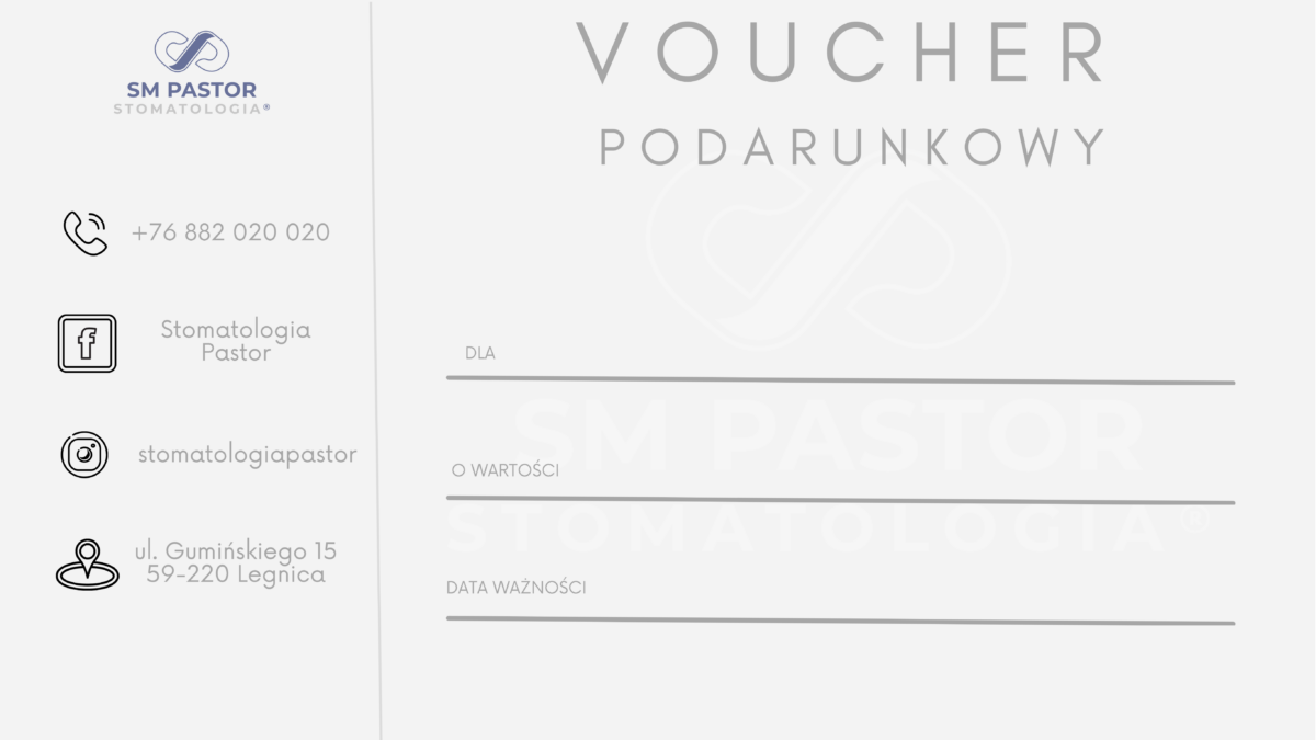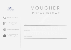 Zdrowy i piękny uśmiech może być wspaniałym prezentem dla najbliższych nam osób, dlatego też z przyjemnością zapraszamy do skorzystania z zakupu VOUCHERA PODARUNKOWEGO na usługi w SM PASTOR Sp. z o.o.